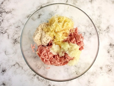 Перемешайте фарш очень тщательно, чтобы все ингредиенты смешались между собой, панировочные сухари не слиплись комочками. Подготовленный фарш накройте и уберите в холодильник на 1-1.5 часа. Котлеты из охлаждённого фарша будут легче лепиться.