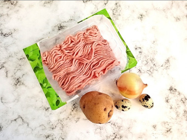 Картофель и лук очистите и крупно нарежьте. Картофель в фарше придаст готовым котлетам пышности, а лук добавит сочности. Филе индейки промойте под проточной холодной водой и обсушите салфетками или полотенцем. Нарежьте мясо на крупные кусочки.