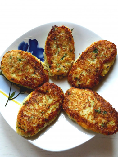 Рецепт приглянулся сочетанием кальмаров с картошкой. Но не стала отдельно обжаривать лук и не стала класть морковь,что бы не перебивать оригинальный вкус и аромат кальмаров. Еще осторожна была с зеленью боялась, что её вкус будет преобладать. Но фактически она там и не ощущалась. Еще посчитала лишним их тушить. Просто обжарила по пять минут с каждой стороны и все. Котлеты получились зажаристые снаружи и очень воздушные и сочные внутри. По моему блюдо аппетитное и легкое в приготовлении.