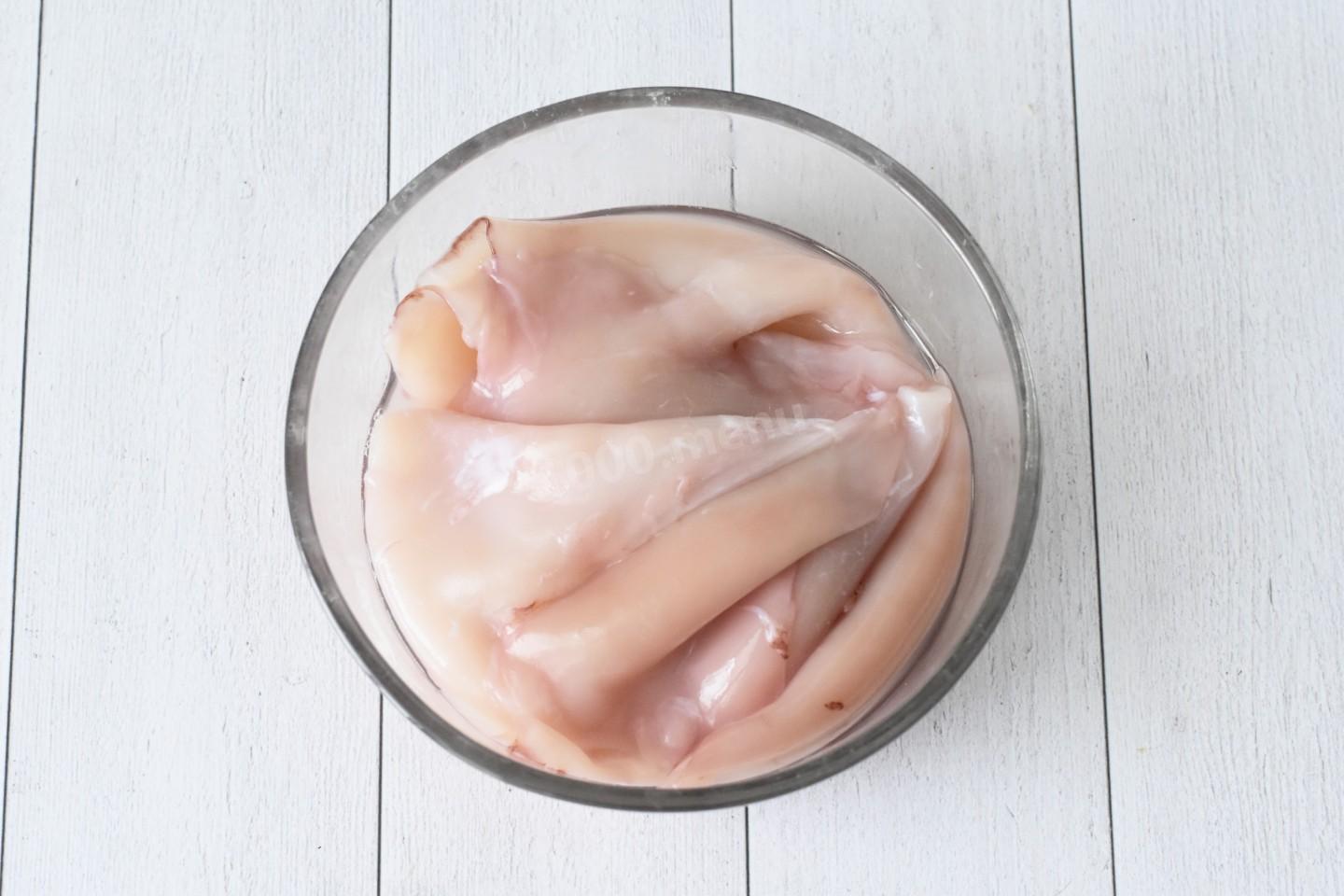 Шаг 2. Как подготовить, очистить и измельчить кальмары?