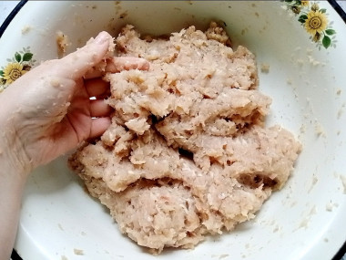 В миску сложите ломтики хлеба, залейте водой или молоком так, чтобы на 2 см выше хлеба было жидкости. Вымачивайте 15 минут, потом хлеб отожмите, переложите в другую посуду.