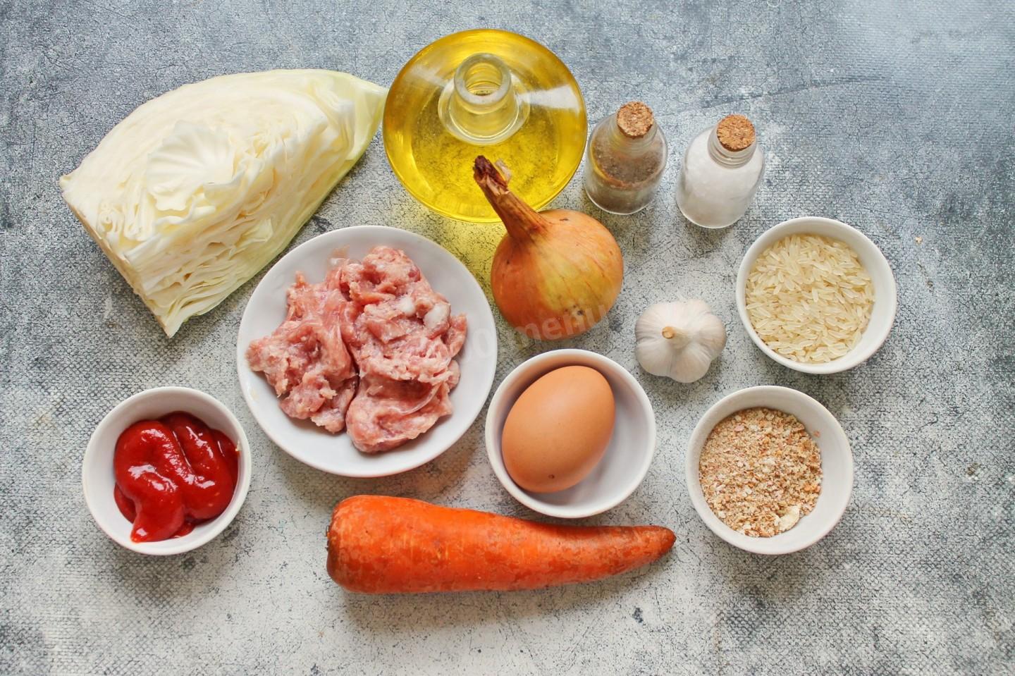 Подготовьте все необходимые ингредиенты для приготовления. Яйцо тщательно вымойте, так как даже при видимой чистоте, на них могут остаться бактерии. У капусты удалите верхние листья, морковь и репчатый лук почистите. Овощи сполосните. Фарш можно взять готовый, но лучше всего приготовить дома. По ссылке в статье под рецептом можно прочитать о тонкостях приготовления фарша.