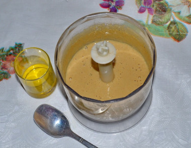 Продолжая взбивать, постепенно по 1 ст. л. добавьте кунжутное или оливковое масло. Взбивайте массу до получения гладкой однородной пасты. Время от времени давайте блендеру отдохнуть, особенно если ощущаете, что он перегревается. Я делала 3 такие остановки в процессе взбивания.