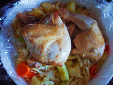 Искала на сайте что бы приготовить на ужин и рецепт курицы с овощами в рукаве в духовке пришелся мне по душе. Курицу замариновала, порезала овощи (капусту взяла белокочанную) и отправила форму с рукавом в духовку на час. Через час всё было готово. Получилось вкусно и полезно. Спасибо за такой практически диетический рецепт!
