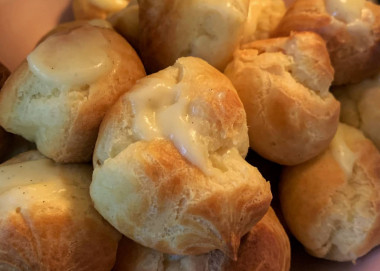 Безумно вкусно. Не хватило крема для всего и пустышки намазала сыром Филадельфия- ням ням. Хрустящая корочка , нежные внутри.