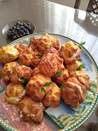 Профитроли получились очень вкусными. Делала строго по рецепту. Начинка у меня сладкая и с творожным сыром и сёмгой. Семья высоко оценила, уплели все сразу.