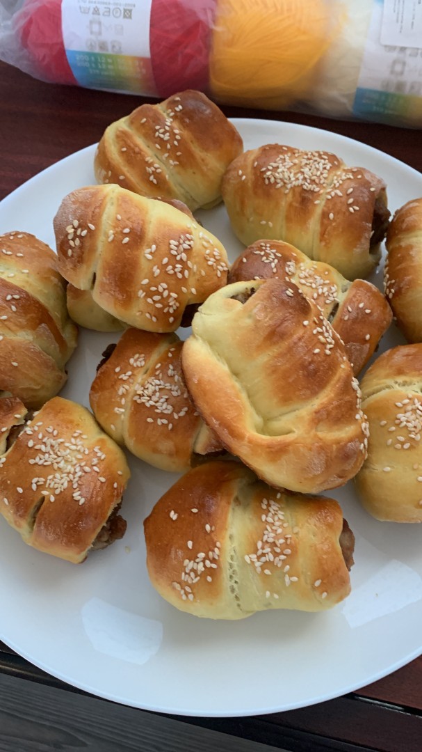 Мои дети очень любят выпечку! Особенно котлеты в тесте! Котлетки я жарю сама. Ароматные, сочные! Запах свежих, вкусных котлеток разносится по всему дому. Пока нажарю котлет, подходит дрожжевое тесто. Заготовки готовы, и я приступаю к основному приготовлению. Обязательно для красоты посыпаю булочки кунжутом. Аромат сказочный! Нереально вкусно получается! Обязательно попробуйте приготовить это блюдо! Приятного аппетита!
