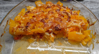 Практически готовую тыкву посыпаем оставшимся сыром и ставим под гриль на 5-7 минут.
