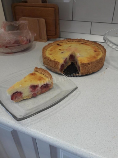 Спасибо большое за рецепт пирога с замороженной клубникой! Получилось очень вкусно! Только у меня клубника осталась внизу, но мне так даже больше понравилось, больше похож на чизкейк, тесто восхитительное сливочное и нежная начинка. Только я в начинку добавила больше сахара в 2 раза, потому что сметана кислая + замороженная клубника тоже кислинку дает, получилось идеально!