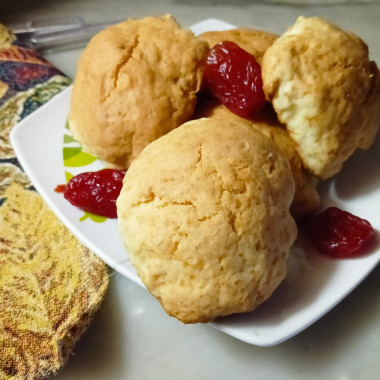 Получились пушистые шанежки, для полезности можно больше сухофруктов добавлять. Я положила сахара побольше, очень люблю сладкое, и муки больше ушло. Обалденные сырники, как булочки, даже больше понравились, чем обычные, жареные. Особенно пока свежие были, нежные и воздушные, как пирожные. Пеку 2 раз, очень быстро съедаются