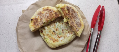 Приготовила прибавив немного, получилось 6 небольших лепëшечек, а в начинку положила творог с укропом 🥰. Тесто оставила липнущем к рукам, чтоб не переборщить с мукой, а когда разминала его, присыпала, так что получилось 🔥