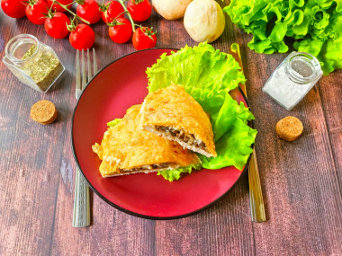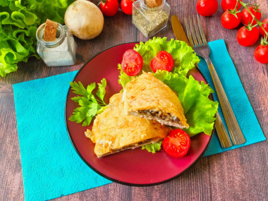 По поверхности каждого кусочка равномерно распределите обжаренные грибы.