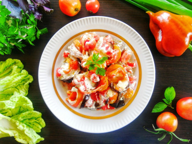 Мясо получилось очень вкусное, прекрасно запеклось, овощи дошли до мягкости, дали много сока (мужу сварила спагетти на гарнир, когда добавила мясо с овощами, вышло сочно, как он любит). Дополнил картину соус из сметаны с чесноком, очень ароматный, раздразнивающий аппетит (я добавила к сметане еще примерно две ложки майонеза, мне нравится его солоноватый вкус).