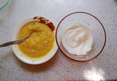 Аккуратно вмешайте взбитые белки в кабачковую массу.