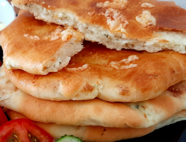 Очень люблю хачапури и вообще разные лепешки. Пережаривать их на сковороде действительно бывает долго и утомительно. В духовке получается все быстрее и меньше трудозатрат) Я разделила тесто на 4 части, чтобы они уместились на один противень. Тесто податливое, приятное, при раскатке не рвется. Начинки по количеству получилось достаточно много и это радует. Лепешки вышли румяными, аппетитными и очень вкусными. Мы их брали с собой в дорогу. Спасибо за такой прекрасный рецепт!