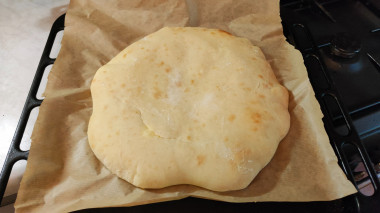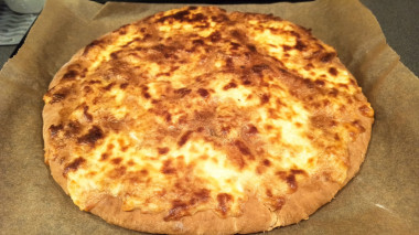 Тесто в работе оказалось шикарным. Нежное, мягкое, эластичное. Без проблем раскатала большой круг. Вот только когда скрепляла края над начинкой, теста в центре вышло довольно много. Поэтому после переворачивания и раскатывания хачапури уже с начинкой неизбежно в центре теста оказалось много. Ну я делала подобный большой хачапури по-мегрельски впервые