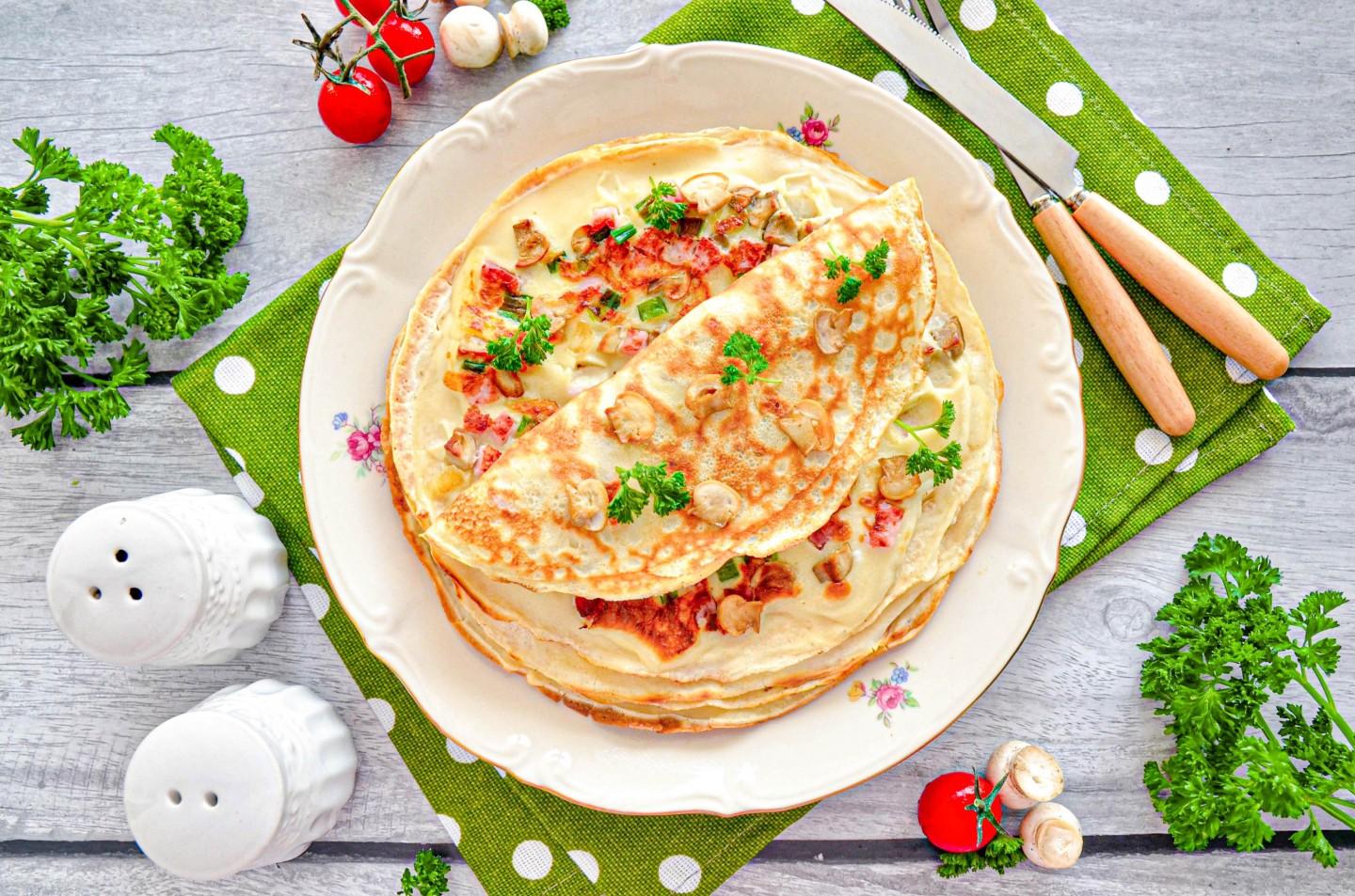 Эти классические блины с припеком с сыром и ветчиной — это не просто вкусно, но и питательно. Благодаря обжаренным шампиньонам и белку из яиц и ветчины, вы получаете заряд энергии на полдня. Тесто на молоке делает блинчики мягкими, а сырная "корочка" внутри придает аппетитную тягучесть. Идеальный вариант для сытного завтрака или обеда.