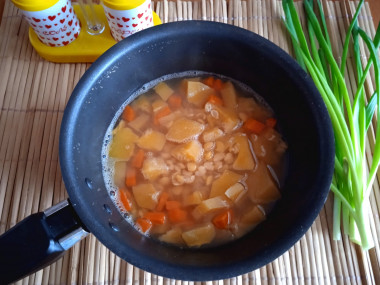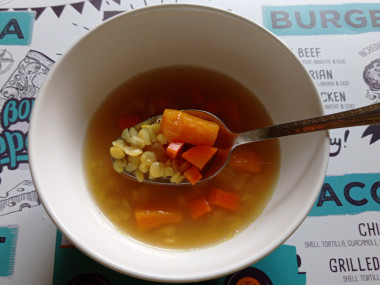 Через 1 час отправьте морковь и тыкву в кастрюлю и варите еще около 30 минут до готовности гороха. Он должен хорошо развариться.