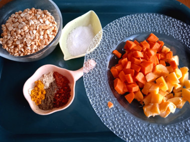 Как сварить индийский гороховый суп Мунк Дал? Подготовьте все необходимые ингредиенты.