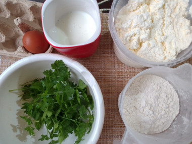 Как сделать чепалгаш с творогом и зеленью? Подготовьте все необходимые ингредиенты. Кефир заранее достаньте из холодильника, надо чтобы он был комнатной температуры.