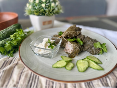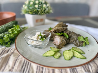 Невероятно вкусное блюдо! Очень важную роль в этом рецепте играют виноградные листья: чем меньше они по размеру и светлее по цвету, тем нежнее и лучше получится долма! Также с позволения автора,хочу добавить, если за пол часа до окончания готовки добавить в кастрюлю к долме кусочек сливочного масла, то долма приобретёт ещё более нежный вкус! Спасибо автору за ваш рецепт!