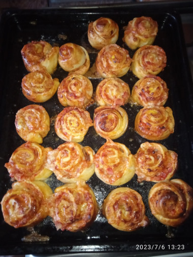 Спасибо за рецепт! Только что испекла, получилось очень аппетитно и вкусно, кетчуп был добавлен с лечо и специями. Обожаю работать со слоёным тестом, оно у меня всегда припасено для выпечки на скорую руку. Однозначно, рецепт в копилке! Домашняя выпечка в 100 раз вкуснее покупной.
