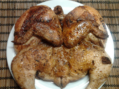 Цыплёнок получился бомбический!!!Это взрыв вкуса!!!Какие витали ароматы на кухне ммммм!!!!Готовила строго по рецепту.цыпочка получилась очень сочной и ароматной!!!