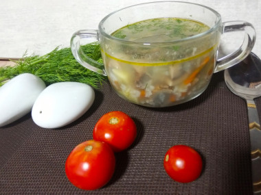 Меня угостили замороженными лесными грибами, захотелось сварить грибной суп с подосиновиками. Пока в кастрюле варился картофель с рисом, на сковороде обжарила лук, морковь и грибы (мои грибы перед заморозкой уже были отварены, поэтому этот шаг при приготовлении я пропустила). Супчик получился очень вкусный, сытный , ароматный! Из специй я использовала только черный молотый перец, а при подаче добавила зелень укропа. Спасибо за рецепт, Юлия М!