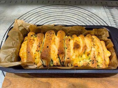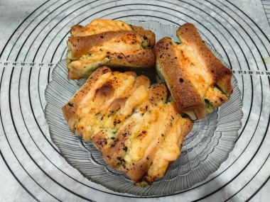 Делал на 4 порции в прямоугольной форме для хлеба. Все пропеклось за 30 минут, запах на всю квартиру. Сыр использовал - пармезан, петрушки положил больше чем по рецепту.