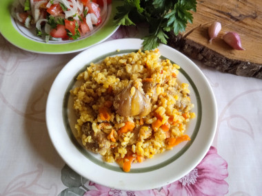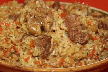 Достойный рецепт! Рис вышел рассыпчатый, мясо нежное, овощи мягкие. Плов получился пикантный и ароматный. Подавала плов с помидорным салатом. Шикарный и сытный вышел ужин. Благодарю автора!