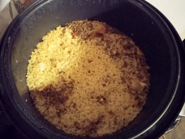 По окончании программы крышку не открывайте минут 10-15. Затем плов перемешайте и переложите в большое блюдо!