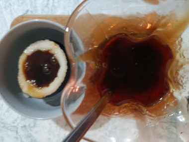 Потом мёд добавляли и к следующему приёму - новая порция. Так что всё верно. Мёд добавляется и сок появляется, так как он в мякоти корнеплода и постепенно стекает в лунку. А когда всю мякоть вынули, то сока меньше.