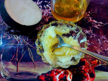 В качестве средства от кашля употреблять по 1 чайной ложке 3 раза в день после еды. Обычно пишут, что нужно подливать мед. Из своего опыта я заметила, что практически весь сок выделяется в первый же день, и потом от того, что добавляешь мед, сока больше не становится. Пробовала с корнеплодами разного размера - эффект одинаковый.
