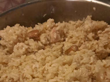 Т.к. белых грибов было мало, добавила 1:1 куриной грудки. Но сам рис обладает устойчивым грибным ароматом и послевкусием. Боялась, что будет похож просто на плов, но нет, вкусовые ощущения совершенно новые! Беру рецепт в "избранные" и заношу в свою рукописную книгу подборки лучших рецептов!