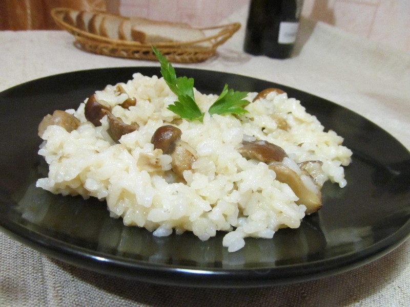 Кроме белых грибов можно использовать обычные шампиньоны. Есть вариант ризотто с курицей и грибами.