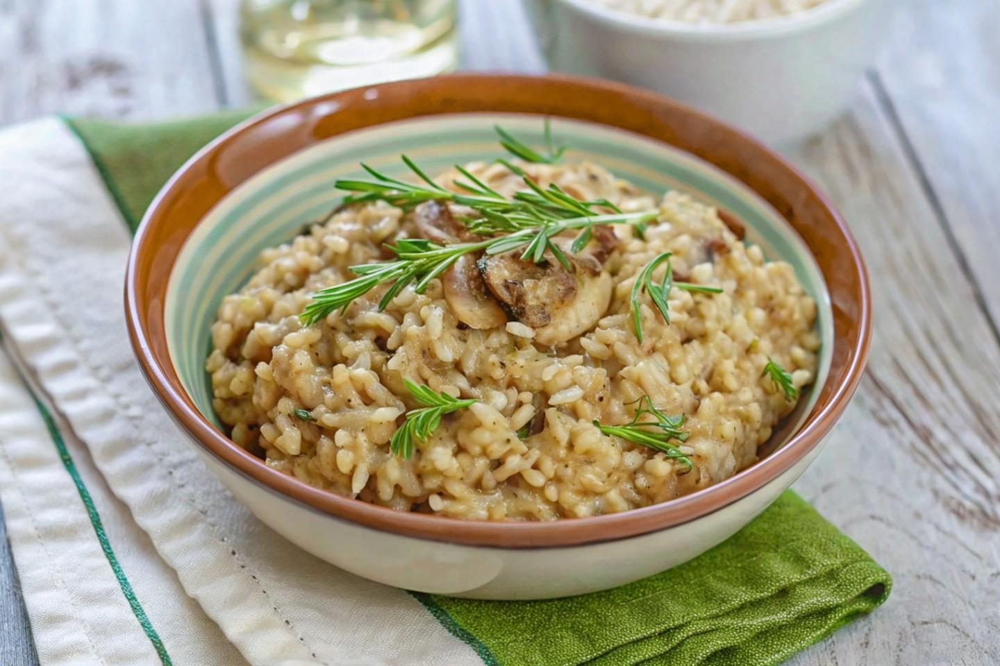 Приготовила ризотто с белыми грибами — получилось насыщенное. На оливковом масле обжарила мелко нарезанный лук и чеснок, добавила нарезанные белые грибы. Когда грибы подрумянились, всыпала рис арборио и прогревала, пока зерна не стали прозрачными по краям. Влила белое вино, выпарила алкоголь. Затем добавляла горячий куриный бульон по половинке ковшика, постоянно помешивая. В конце ввела сливки и тертый пармезан — масса стала бархатистой.