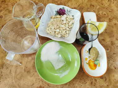 Теперь подготовьте ингредиенты для соуса. Арахис можете заменить на кешью, грецкие орехи, пекан и т.д.