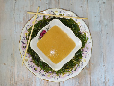 Водоросли чука давно полюбила, для меня даже морская капуста встала на второе место. Соевый с кунжутным маслом и лимоном маринад делает чуку пряной, уже, как-будто бы и достаточно. Но так можно подумать, пока не попробуешь арахисово-кунжутный соус с горчицей.