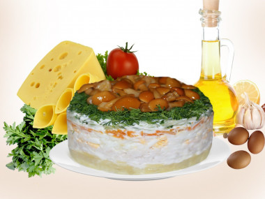 Готовлю очень похожий салат, только грибы добавляю маринованные, они делаю салат более сочным, но думаю с жаренными получиться также вкусно