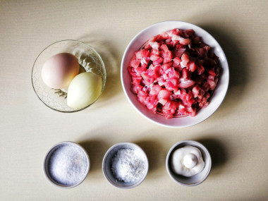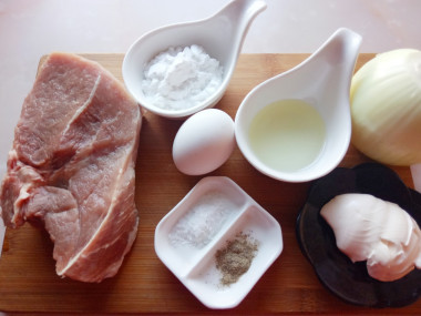 Как сделать котлеты, рубленные из свинины? Подготовьте продукты. Мясо выбирайте с жировыми прослойками, котлеты получатся сочнее. Чтобы мясо было легче резать, подморозьте его немного в морозилке, если оно свежее, или не размораживайте до конца, если замороженное. Нарежьте мясо очень маленькими кусочками.