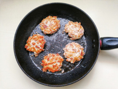 Котлеты должны хорошо прожариться. Поэтому переворачивайте их несколько раз. В самом конце лучше накрыть сковороду крышкой и подержать котлеты 5 минут на самом маленьком огне.