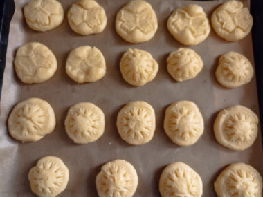 Скатала из каждого небольшой шарик, слегка придавив, придала форму маленькой лепешки.