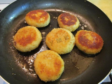 Слепите из нее небольшие круглые котлетки. Чтобы каша не прилипала к рукам, смачивайте их холодной водой.