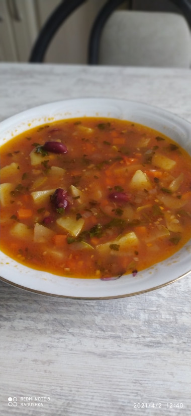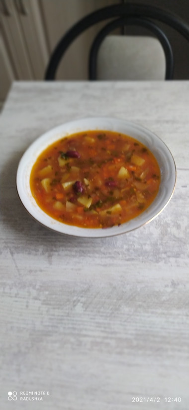 Отличный, сытный суп с красной фасолью консервированной! Этот рецепт с лёгкостью готовится в мультиварке, бульон у супа получается очень густой и насыщенный по вкусу, овощи прекрасно с ним гармонируют. Мужу так же очень понравился этот суп со сметанкой) рекомендую, сытный, яркий, прекрасно подходит для зимнего времени!