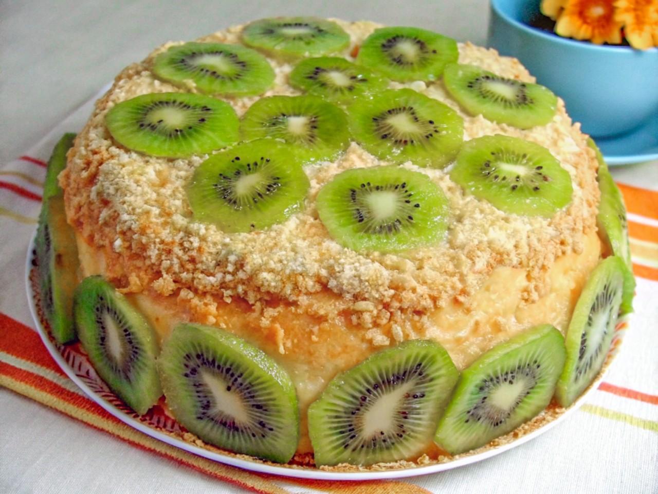 Украсьте кружочками киви. Бананы я не выкладывала сверху, т.к. они быстро темнеют.