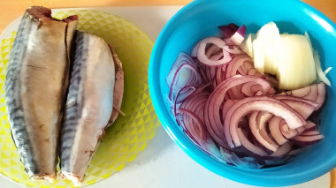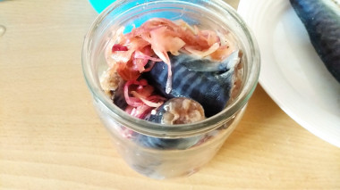 Очередной шедевр из рецептов- маринованная скумбрия быстрая в рассоле за 3 часа. Равнодушным не оставит никого, кто хоть немного любит рыбу. На самом деле готовится быстрее чем 3 часа, и получается очень нежная и вкусная. Рыбу режем крупными кусками(2-3 части каждая рыбина), лук режем полукольцами. Воду я взяла прямо из-под крана, растворила в ней около 3 ложек крупной соли, положила скумбрию, предварительно промыв и очистив от внутренностей, теперь оставляем на пару часов, пусть отмокает и пропитывается солью. В отдельной посуде смешала красный лук и немного обычного обычного, сахар, соль, уксус, тоже дала замариноваться пока солится рыба. В банку кладем слоями лук и скумбрию. Сама скумбрия рыба жирная, поэтому масла капаю буквально чайную ложку, закрываю крышкой, и отправляю на холод на полчаса. Можно встряхнуть банку несколько раз чтобы перемешались вкусы лука, масла и рыбы равномерно. Такую рыбку я часто готовлю к картошке, а в этот раз сделала для бутербродов. Благодарю за рецепт.