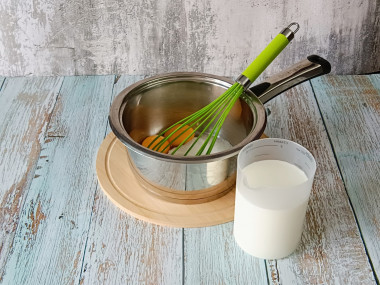 Смешала яичные желтки с сахаром, молоком и сливками, затем добавила муку крахмал и какао. Подогрела смесь и добавила плитки шоколада. Я не стала шоколад заранее растапливать, так как он добавляется в последнюю очередь в горячую основу, разойдется в любом случае.