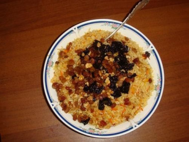 Знаю рецепт плова с курагой и изюмом более простой.