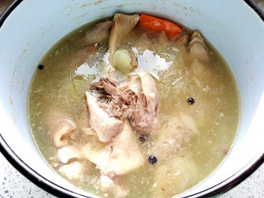 Заливаем водой так, чтобы она была выше на 2-3 см. Ставим на огонь, доводим до кипения, а затем снимаем пену, уменьшаем огонь и варим на самом слабом огне 2 часа, стараемся, чтобы вода активно не кипела, а ножки как бы томились