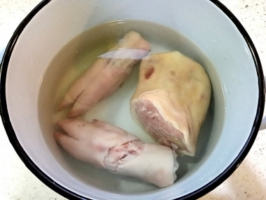 Свиные ножки помыть и почистить